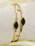 The gold-tone open cuff hugs the wrist comfortably, while deep-black inlay pops against knit sleeves and silk shirts. It pairs beautifully with a dainty gold bar necklace for a chic set.